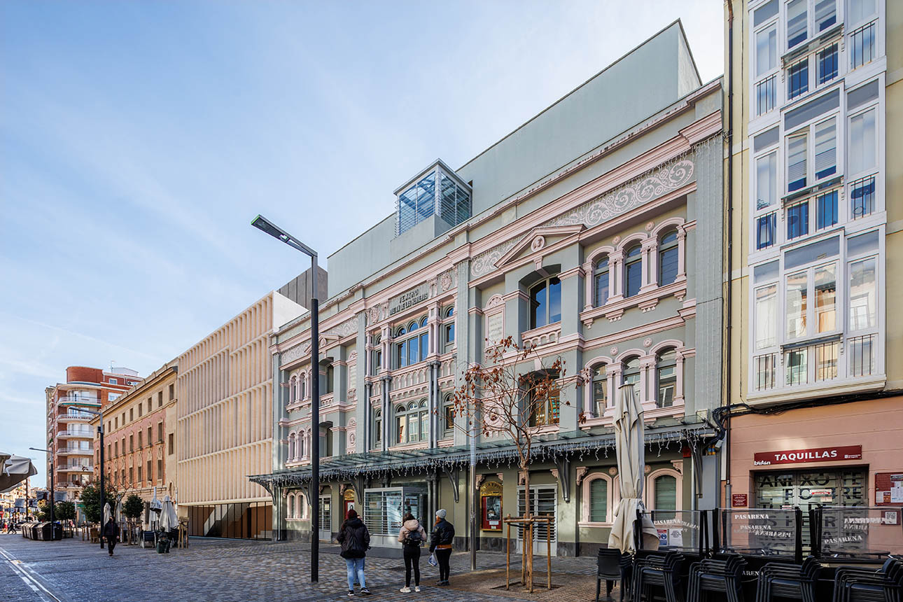 Taking advantage of the privileged position in the city of Logroño, the new volume is organized as an open equipment. The contact that the new Theater space establishes with the street is diaphanous and the vestibule visible from the outside.